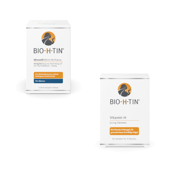- Doppelte Wirkung: Minoxidil stimuliert das Haarwachstum von außen, während Vitamin H die Haare von innen heraus stärkt.